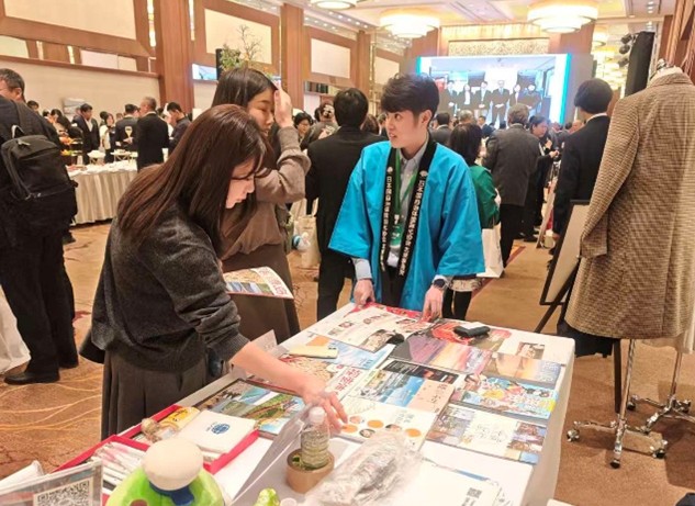 中国・大連市で3月6日、在大連領事事務所が主催する「天皇誕生日祝賀レセプション」が開催され、クレア北京事務所はブースを出展した。在大連領事事務所では、毎年、わが国のナショナルデーの祝賀行事として天皇誕生日レセプションを開催している。今回は、クレア北京事務所のほか、岩手県、新潟県、神奈川県など14の県市がブースを出したほか、民間企業19社が出展し、約340人の来場者に対してPRを行った。